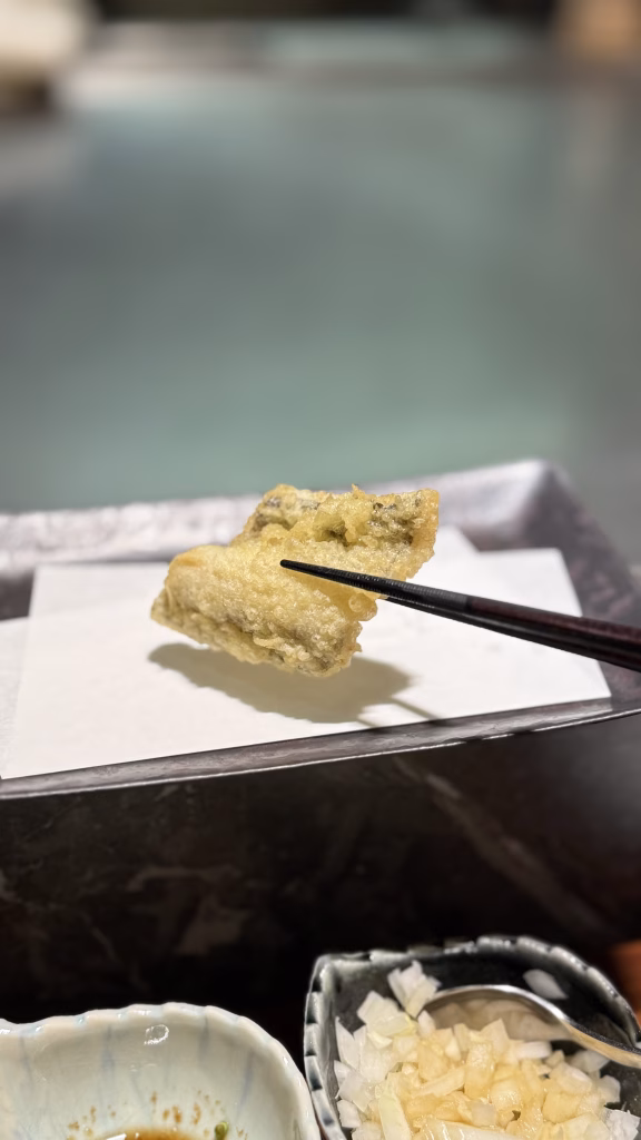 這部分的料理是本餐最大的亮點。炸物表現整體水準以上,麵衣薄而酥脆、火候掌握得宜。特別喜歡干貝外酥內嫩的口感,海苔包海膽則是意外驚艷,加熱後的海膽濃郁不腥,蔬菜類也保持了清爽口感,整體非常值得肯定。