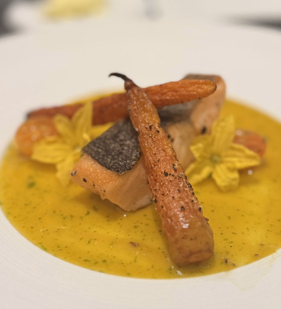 以秋日楓景為靈感的一道魚料理。