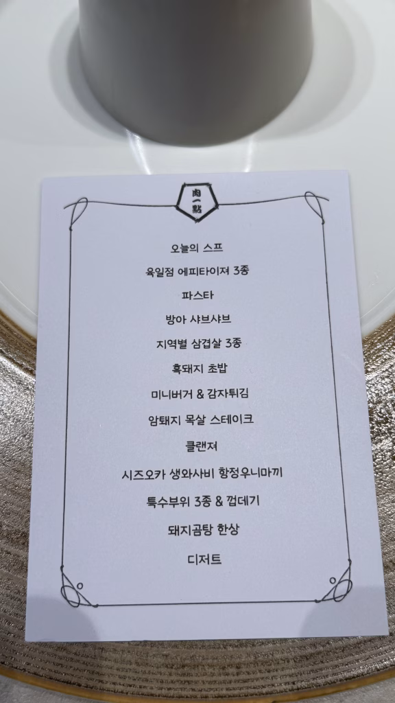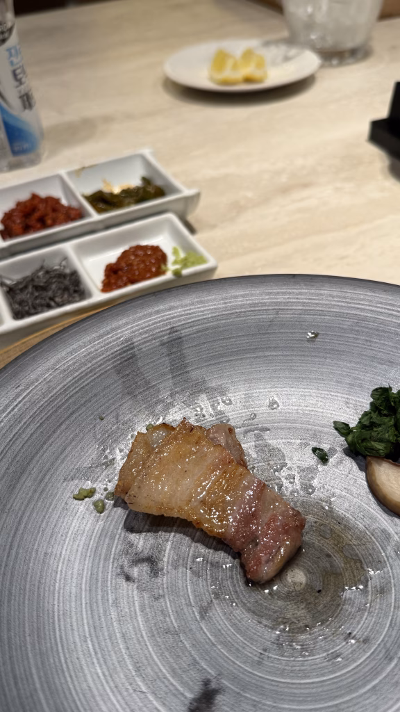 而且以 130000 KRW / 人 來說,這樣的內容與服務,我覺得價格很可以接受。不是那種吃完只覺得「好飽」的燒肉店,而是吃完會覺得:原來豬肉也可以被做成這樣。