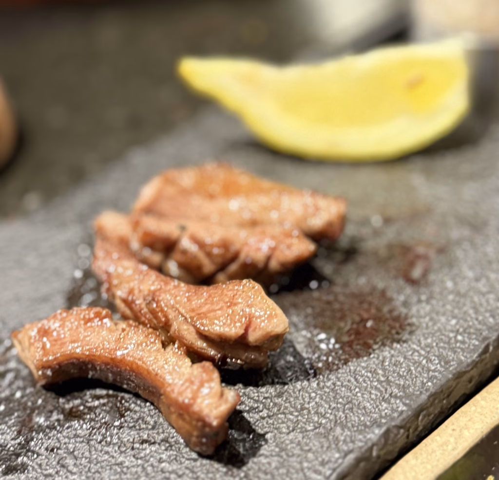 切法厚薄適中,精準捕捉了牛舌最迷人的韌中帶脆。油脂在炭火催化下變得輕盈,與彈性十足的肉質達成完美的動態平衡。